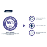 It helps preserve joint health and mobility thanks to its exclusive formula with hyaluronic acid, hydrolysed collagen, chondroitin, glucosamine and omega 3. Its protein content helps maintain muscle mass.